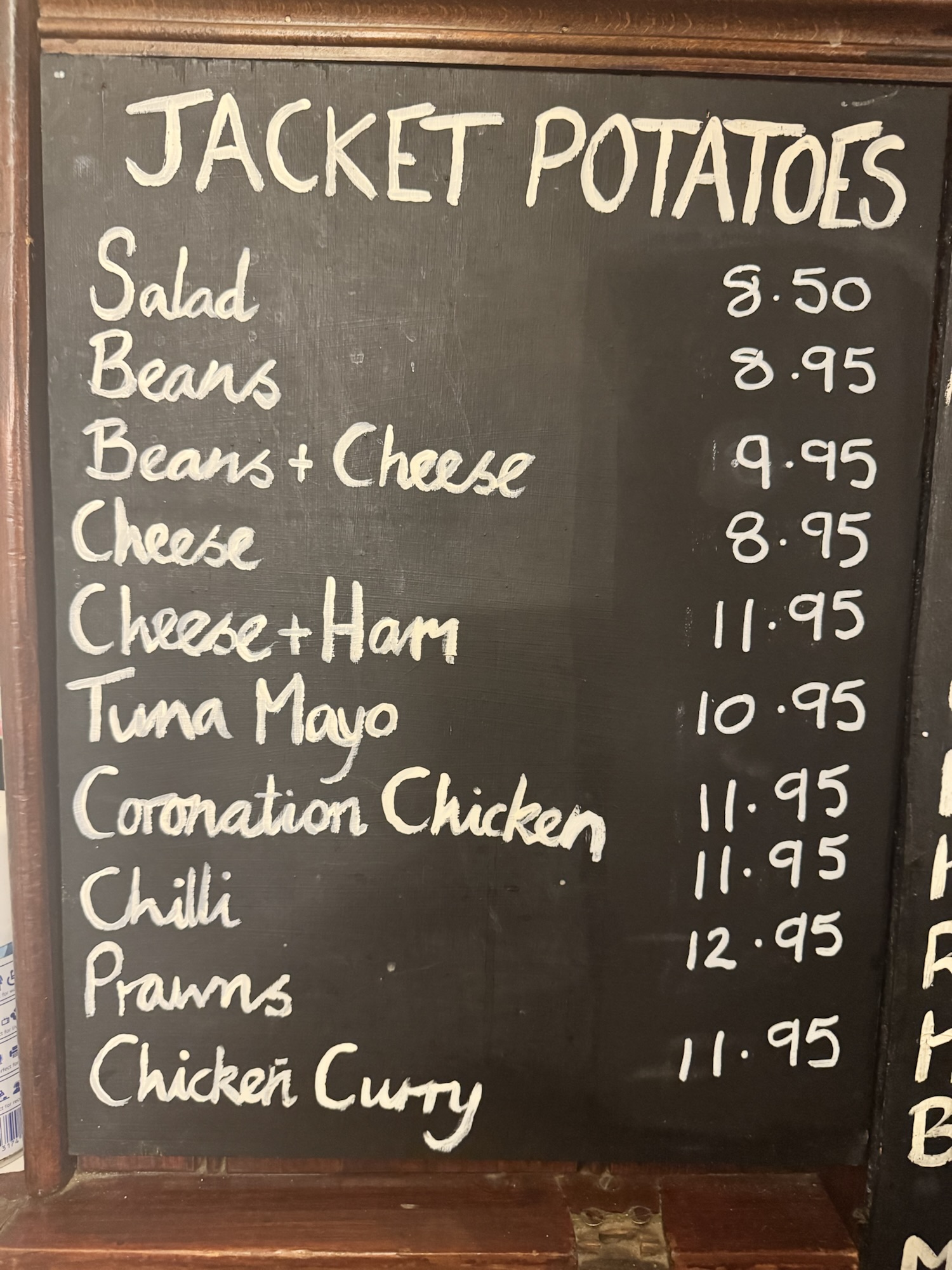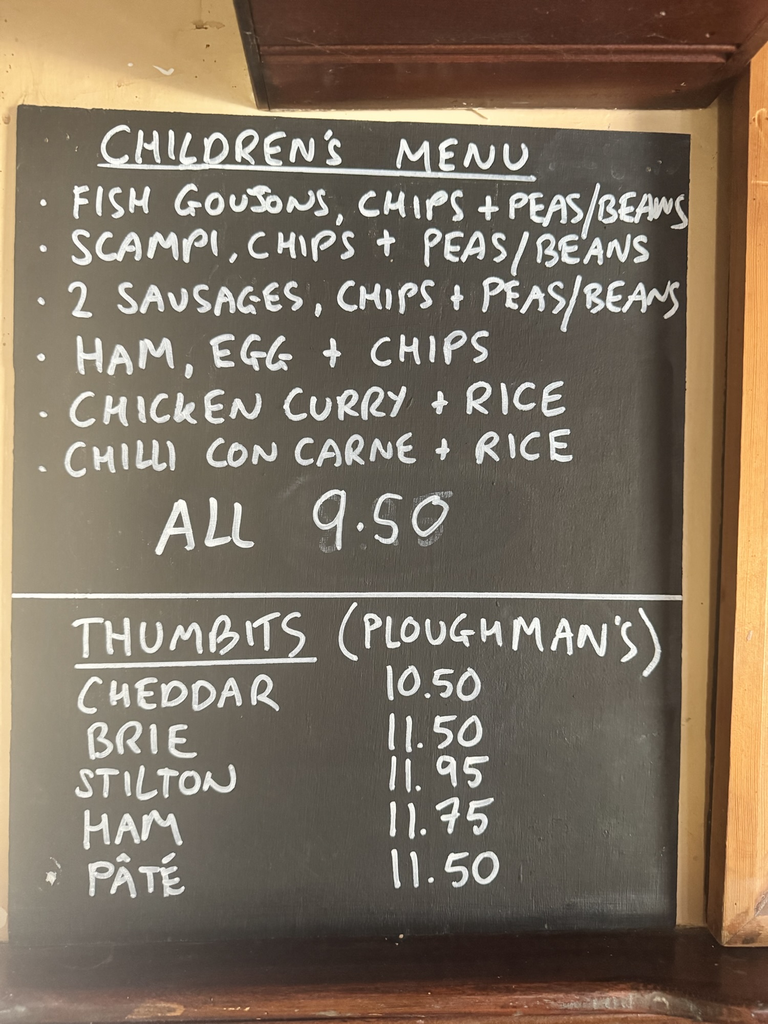 We also serve Thumbits (our name for a Ploughman’s) and Jacket Potatoes.
