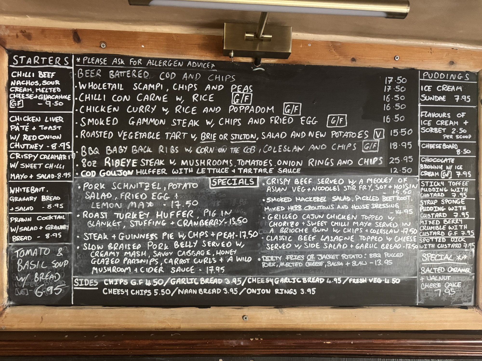 We pride ourselves on our freshly prepared food which is all sourced from the local butcher, fishmonger and greengrocer. Our specials board changes every week and offers a wide variety of meals to suit every appetite. Our specials change daily, and include a choice of roasts on a Sunday.