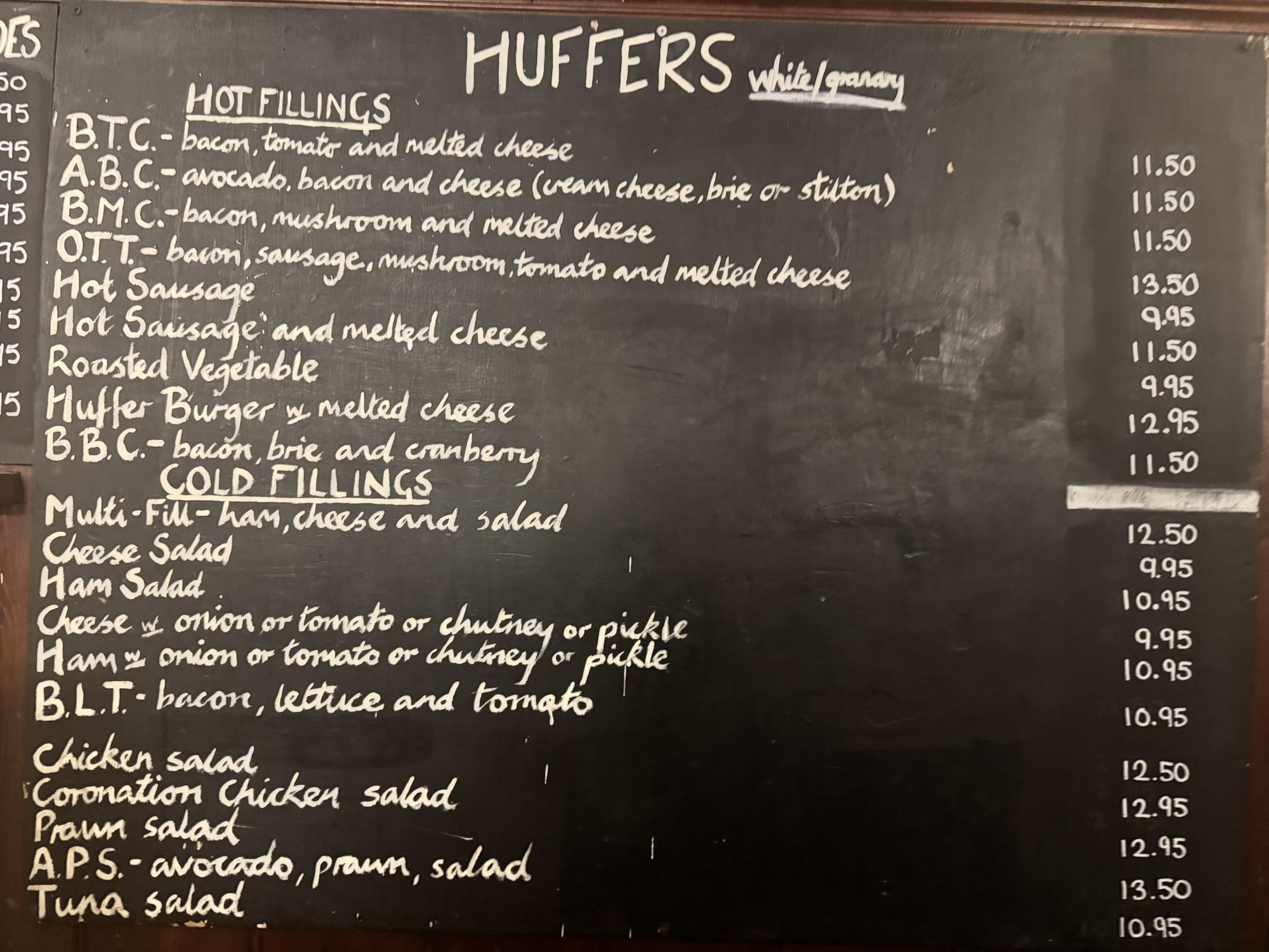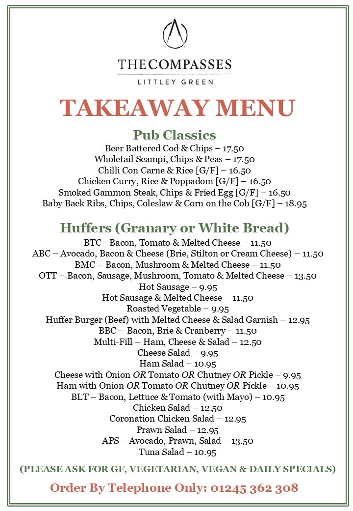 Traditionally a Huffer used to be half a loaf of bread that the men working on the fields would take each day, stuffed with a selection of fillings. Keeping to the traditions of the local area The Compasses still offer Huffers. Available in the pub for over 30 years, these triangular baps can be filled with a large variety of fresh local ingredients.